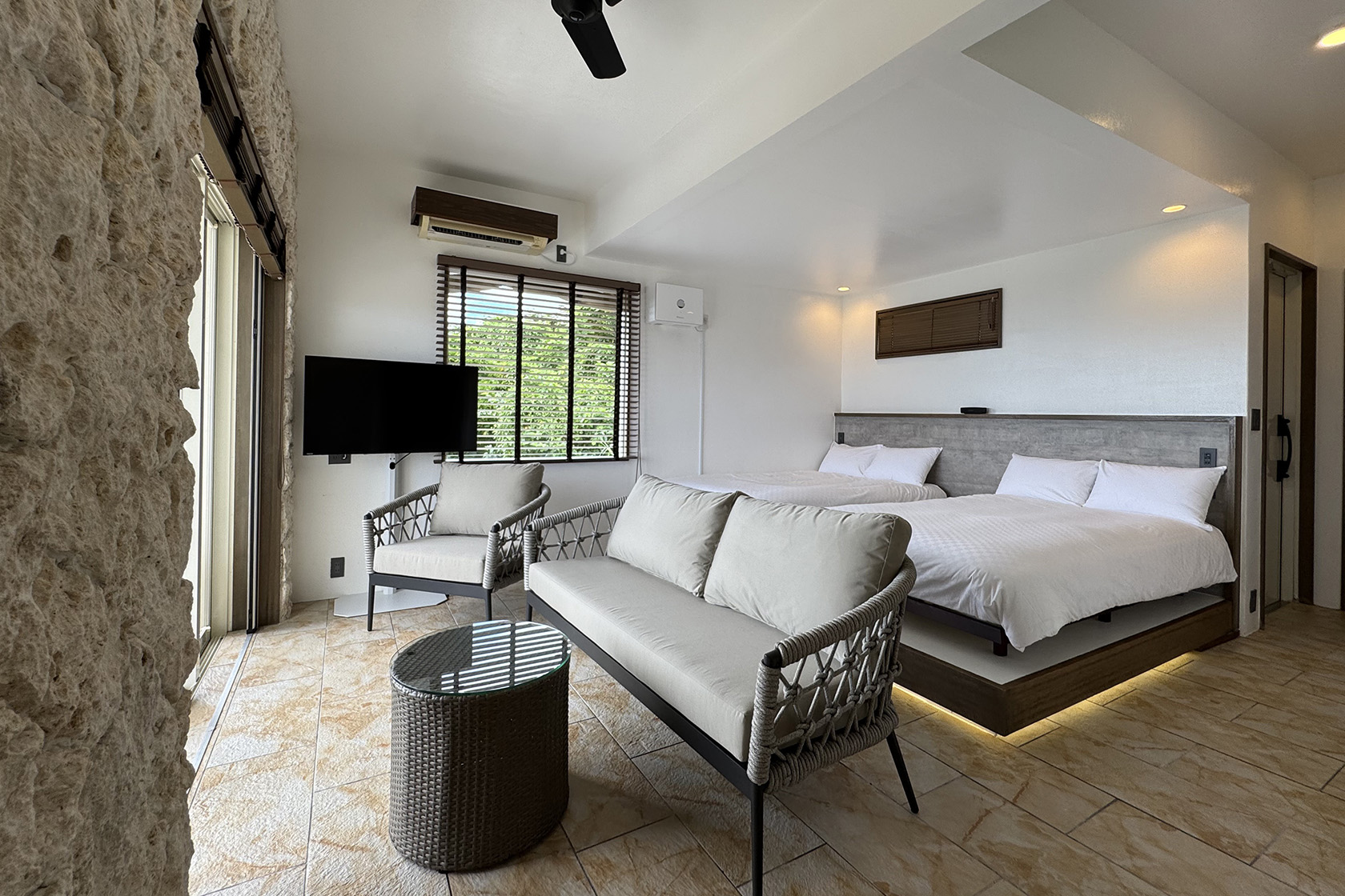 2面の窓からは東シナ海と古宇利島の自然が臨めます