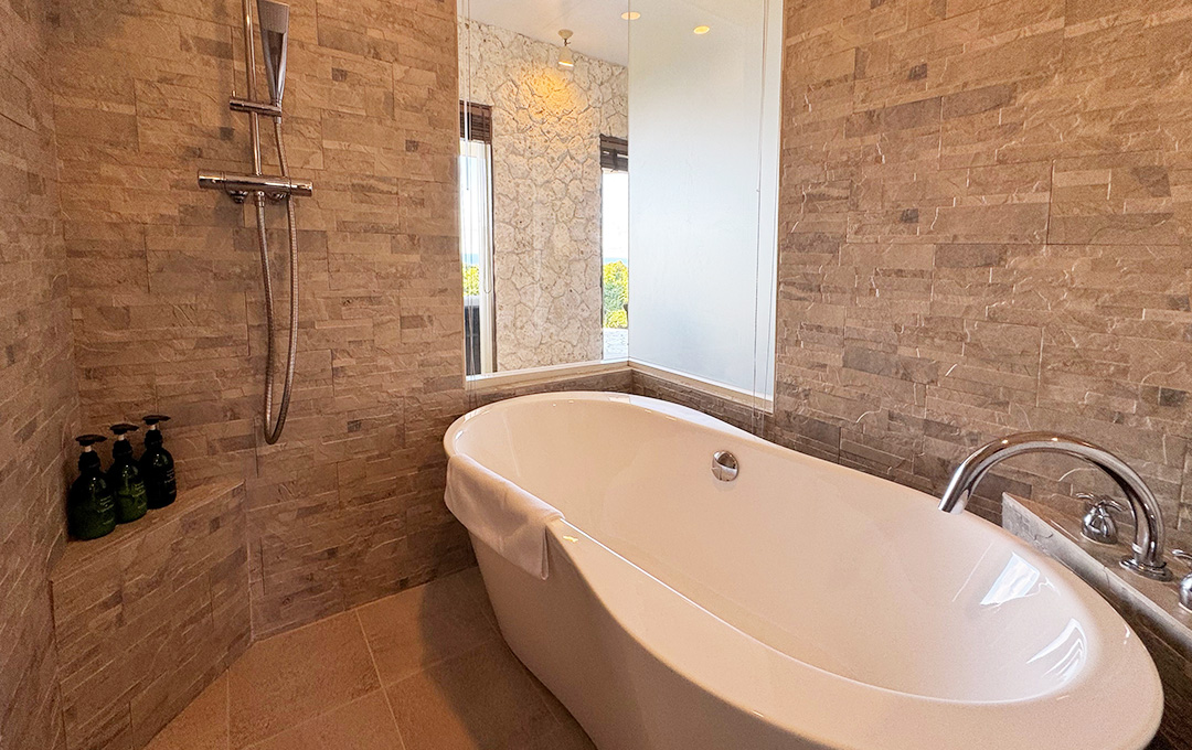セミダブルベッド(2台) / レインシャワー / バスタブ(ビューバス) / シャワートイレ / エアコン / 冷蔵庫 / 冷凍庫 / 電気ケトル / bluetooth対応スピーカー / ヘアドライヤー / 金庫 / 電子レンジ